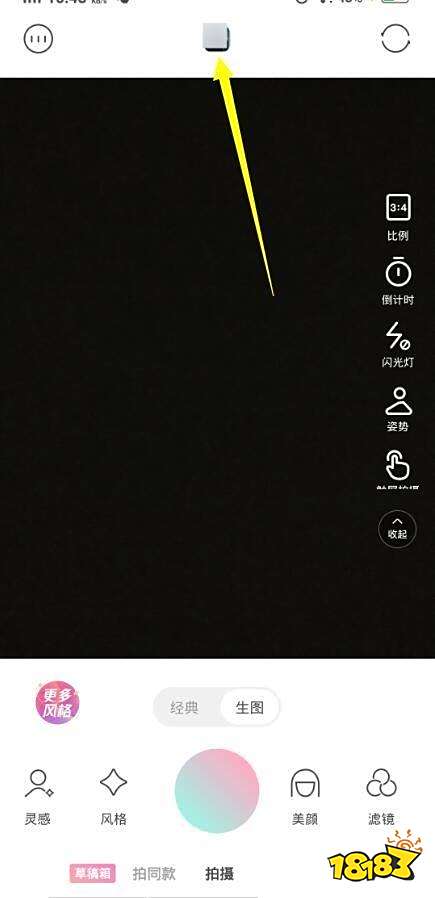 1、首先打开轻颜相机APP,在拍摄页面上方,点击打开照片;