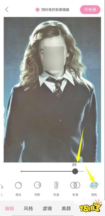 3、最后往右调动褪色的数值,照片的颜色就会变得越来越黑白,这样褪色成功。
