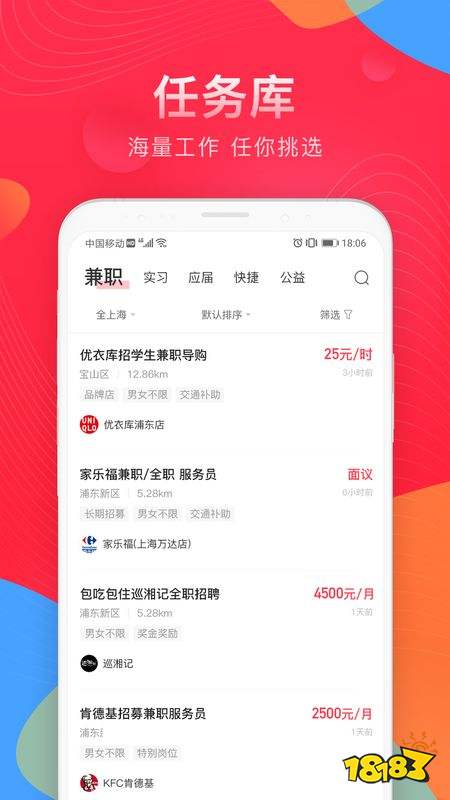 口袋兼职app是可以让用户在最短时间内快速挣钱的软件,简历填写,职位迅速匹配,找工作,上口袋,让你兼职也可以暴富。