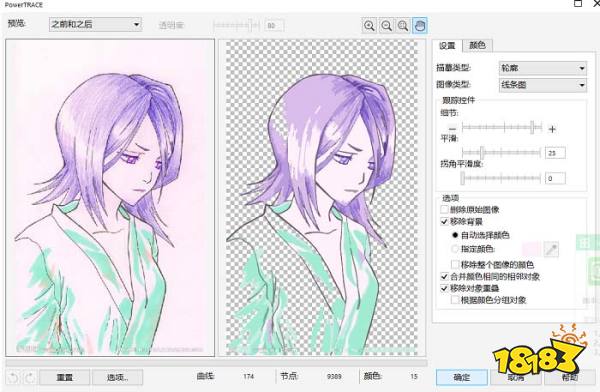 首先打开CorelDRAW,18183小编这里的漫画是从网络上任意下载的,下载完成后,接下来就是将漫画导入CorelDRAW中,然后点击菜单栏“位图”-“轮廓描摹”-“线条图”,打开设置面板。大家可以看看效果图。