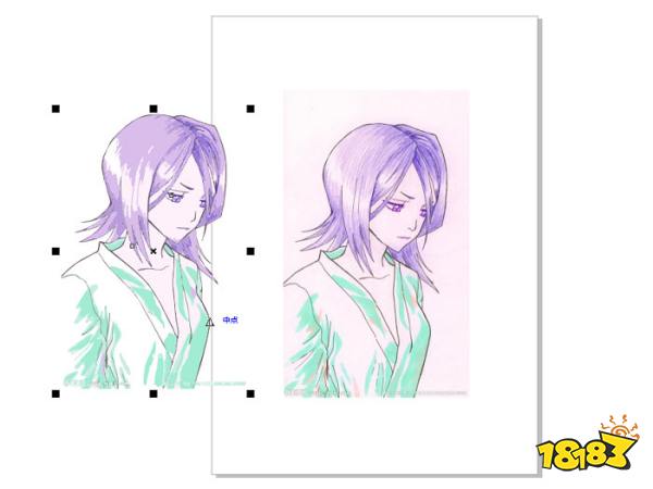 图3:将图片生成的轮廓图用鼠标拖动出来18183小编然后就又双击右下角的“轮廓笔”,设置轮廓线的宽度为“细线”。