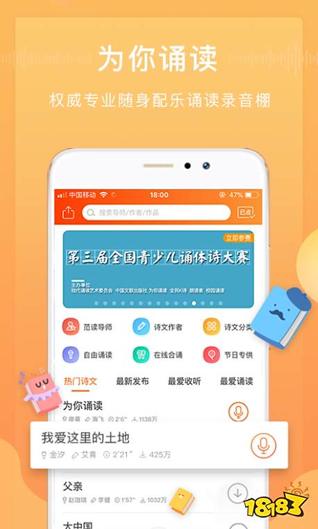 除了最基础的诗歌朗诵以外,用户还可以专门选择英文文章进行在线朗读,这一过程当中可以帮助用户学习到更多的英文单词和句子。对本款应用感兴趣的用户,赶紧下载体验。