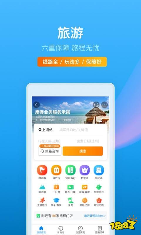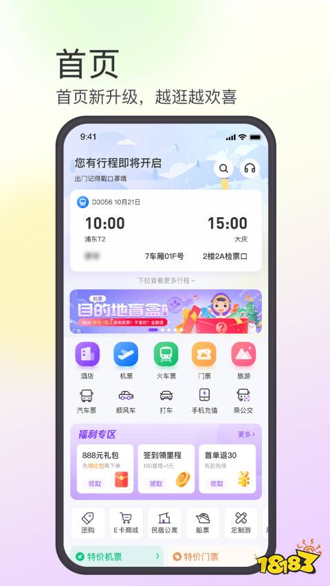 软件提供周末游、跟团游、自驾游、自由行、邮轮行等不同旅游项目,实现身心放松,体验轻松度假,座位随心所欲的挑选和快速退、改签等。它提供多种服务,包括百元出行礼包、特价机票、特惠酒店、会员日优惠、旅行产品特卖等。