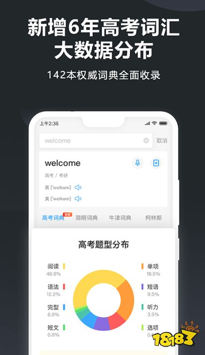 金山词霸是一款根据历年考试真题来研发的一款词汇APP,这款APP会针对用户即将面临的考试来制定不同的学习计划,并且学习内容都极其硬核,十分适合学生使用。