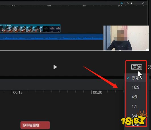 2、打开素材之后,我们右边这边的小预览框里下面这里的比例显示的是“原始比例”