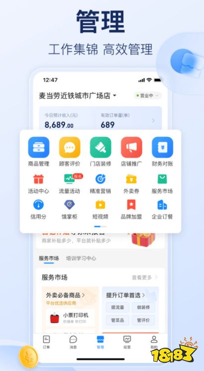 一款为商家量身定制的软件。在其中,商家可以进行自动接单,更可以为您整理您的各种营业信息,调整您的店铺,为您轻松管理。