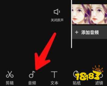 3、导入视频之后点击下方的“音频”。