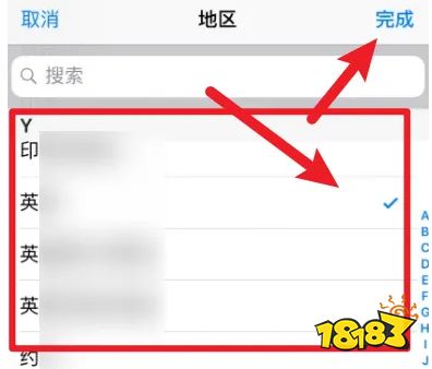 在地区界面根据自己的需要选择并点击右上方的完成。
