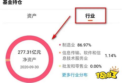 在天天基金上打开一个基金的详情页面,如下图 在详情页下拉找到基金持仓开始查看资产分布比例 点击行业可以查看各行业占比情况 下拉可以查看基金的重仓股票情况,如下图 继续下拉并点击更多持仓信息 可以滑动时间轴分时间查看基金的持股情况