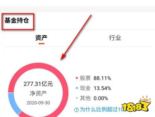 在详情页下拉找到“基金持仓”开始查看资产分布比例