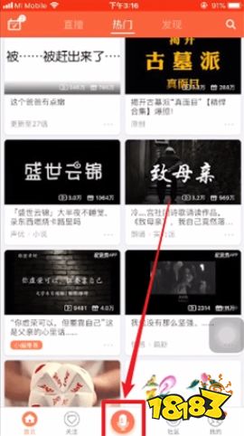 1、首先打开APP,选择下方中间的【麦克风】图标。