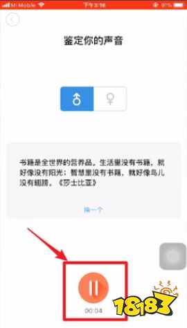 1、首先打开APP,选择下方中间的【麦克风】图标。 2、点击【声音鉴定】。 3、选择【性别】,点击【麦克风】图标,对着话筒读给出的文字,录制8秒以上的音频。 4、读完之后点击红色图标暂停,等待数秒就可以看到鉴定报告。