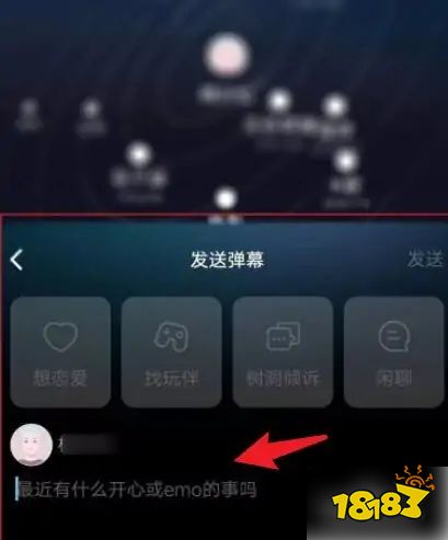 打开贴贴app,点击底部的贴贴 点击弹幕交友 即可打字输入内容,点击发送即可
