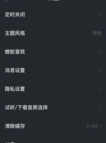 酷狗概念版怎么设置背景 酷狗概念版更换主题颜色方法介绍 在手机上打开酷狗概念版后点击【我的】 进入到以下页面后点击右上角这个图标 在酷狗概念版设置页面点击【主题风格】 在弹出的菜单中选择主题颜色,目前仅有白色和黑色可供选择 以下为我选择主题风格为黑色的截图。