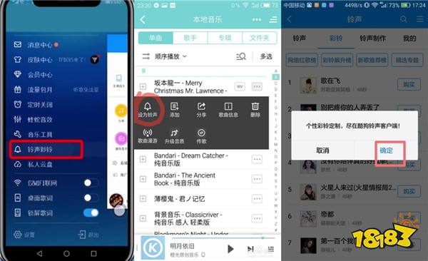 将歌曲设置成铃声的方法很简单,点击歌曲页面下方的三点图标,选择设为铃声有三种选项可以选择,点击设为来电铃声确认设置就成功了,快让朋友给你打个电话试试。
