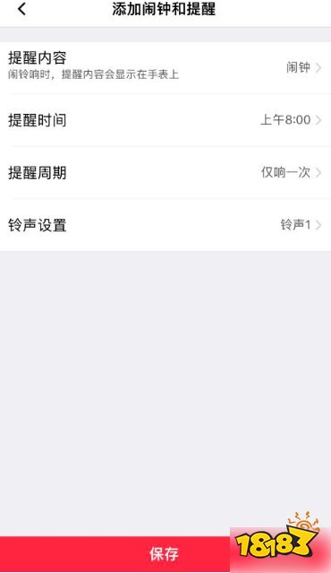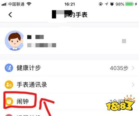 我们进入你所绑定的手表里面之后,可以看见里面都是手表的各种设置,我们找到“闹钟”点击进入“闹钟”