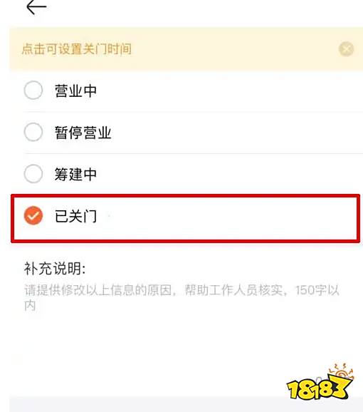 最后进入页面,选择门店营业状态设置为已关门。