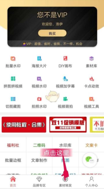 1、打开微商水印相机APP,然后点击底部【素材转发】-【素材圈】 2、接着点击右上角照相机图标,选择发布视频或者图文,按照文字提示完成设置,点击提交 3、再点击右下角【一键转发】,开启手机的一键转发权限,点击【一键转发】 4、最后选择转发的方式及好友即可。