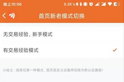 我们可以根据自身需要,切换首页新老模式为有交易经验模式,或无交易经验,新手模式,大家可以根据自身情况选择合理的设置。