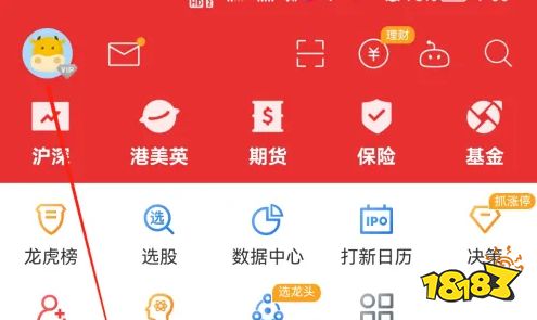 打开东方财富,进入首页,关胆点击上方头像,如下图