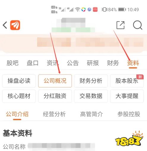 第四步、进入该股票首页后我们往下拉,找到资料,点击资料,然后点击公司概况,就可以查到公司所属行业了