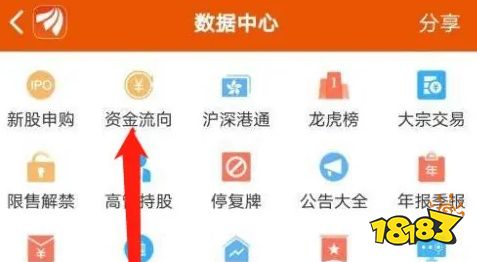 第四步,进入数据中心后,点击上方的“资金流向”。