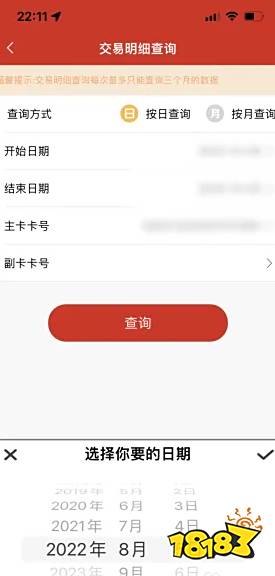 进入到【交易明细查询】页面后设置要查询的时间段,再点击【查询】功能。