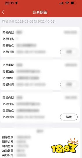进入到【加油卡】页面后点击【交易明细】功能。