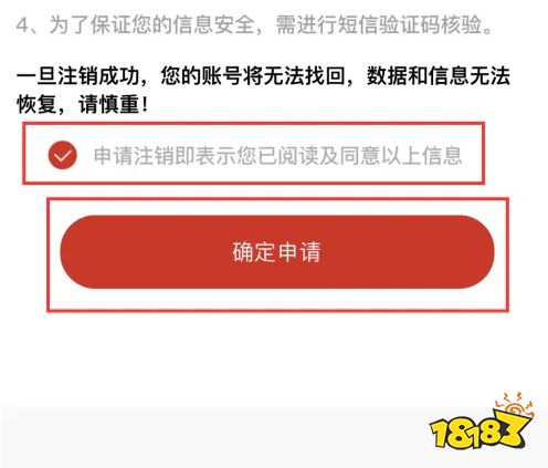 在页面内勾选【申请注销即代表您已阅读及同意以上内容】,再点击【确认申请】。