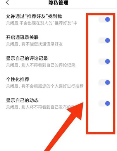 打开红米手机,点击度小视app图标。 进入度小视界面,点击左上角图标。 生成左滑界面,点击设置。 进入设置界面,点击隐私管理。 进入隐私管理界面,根据个人喜好滑动蓝色按钮,对隐私项进行开启或关闭,比如:开启通讯录关联等等。