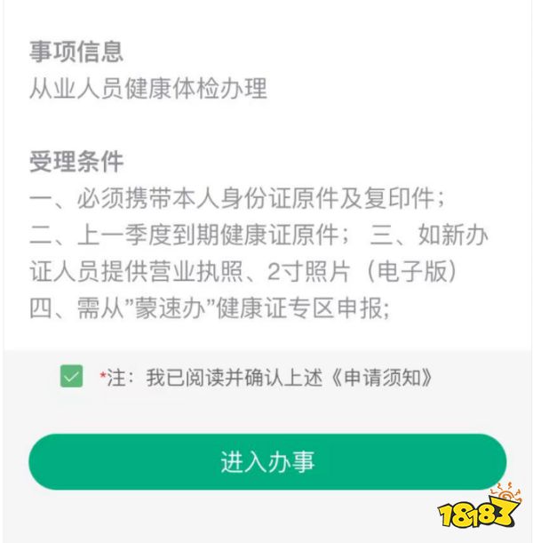 1. 进入“蒙速办”APP首页——点击“健康证专区”