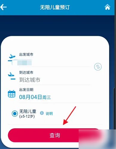 进入无陪儿童预订,选择相应的信息,点击下方的查询进行查看