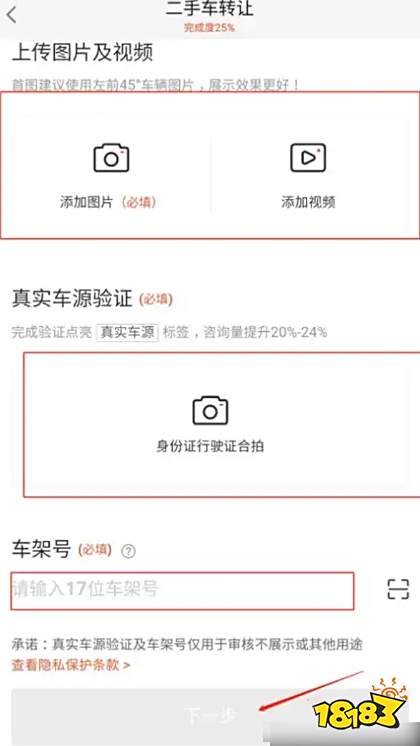 5、按照要求上传车辆的资料信息,然后点击下一步填写信息补充,填写好后即可发布。