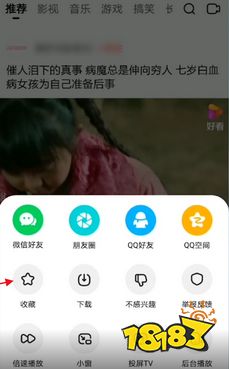 在手机界面下方弹出三行功能按钮,第二行的*个就是收藏的功能选项,点击该功能,即可完成视频的收藏。