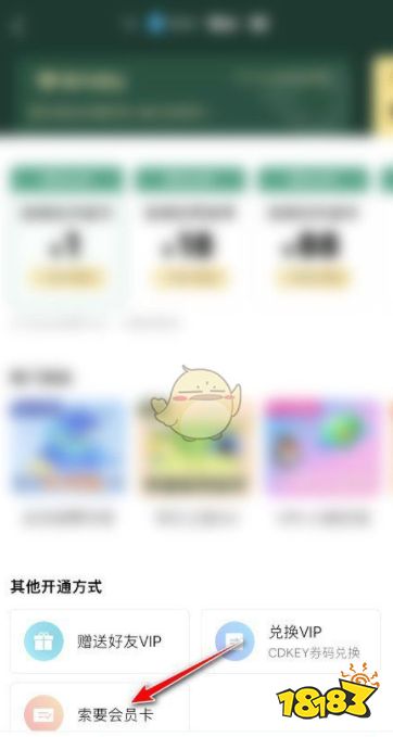 3、在开通界面找到其他开通方式中的索要会员卡,点击进入。