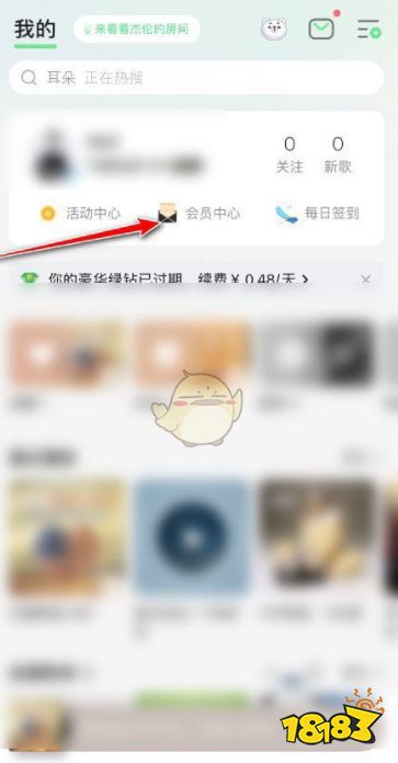 1、打开并进入QQ音乐我的界面,点击进入会员中心。