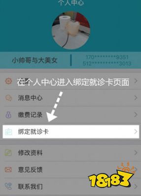1、登陆华医通,进入“个人中心”点击“绑定就诊卡”页面。
