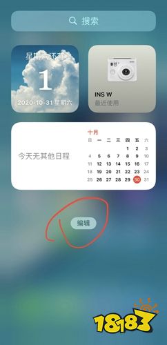3、全部设置完成后返回到手机桌面,向左滑动屏幕,直到看到主屏幕并无法滑动为止。然后点击下方的编辑按键,进入添加小组件的界面。