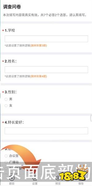 1、打开问卷星app进入问卷,问卷题目设置完毕后,点击页面底部的设置;