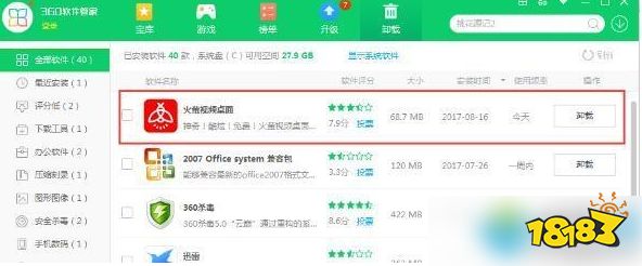 当然了,除了上述的这个办法,还有一个办法也是可以轻松解决该问题,那就是在用户的电脑当中找到软件管家类软件,比如360软件管家独立版或腾讯软件管家独立版并将其打开,然后在“卸载”的界面那里找到火萤视频桌面,并对其进行卸载操作也是可以的。