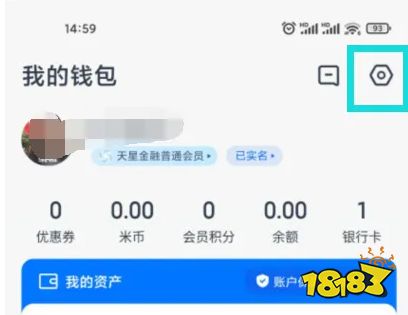 1、打开小米钱包,在我的页面点击右上角的齿轮
