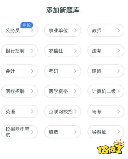 进入后选择你要刷题的类型,例如公务员,事业单位,教师等,点击右边“+”。