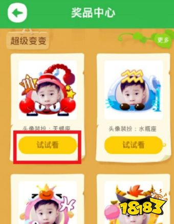 2.来到奖品中心的“超级变变”,下框呈现一些多样的装扮,点进去即可为自己的头像框扮上。