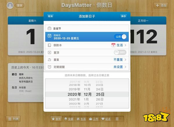 3.输入完名称之后,选择目标的日期,并进行其他的设定,都好了以后点击保存。