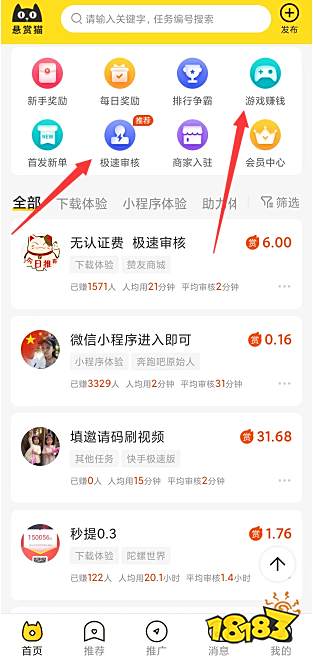 悬赏猫这款软件和其他的悬赏任务软件做单流程基本一样,所有任务都是一单一结算的方式,并且对新用户友好,新用户登录不仅可以获得一个小红包奖励,通过完成新手奖励任务还可以尽快的熟悉平台的做单流程。新用户一般做几单之后就能对平台基本了解并完全上手,平时利用零碎时间接单做任务就能每天赚钱。