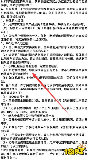 把这些条件综合起来,你就明白了,达成100元红包的条件完全不能必定达到。说白了,这个软件就是忽悠你不断看广告的。想提现也只有拿金币兑换出来的几毛钱才靠谱一点。