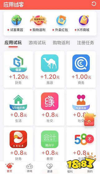 应用试客 类型:试玩体验平台 特点:试玩任务快速挣钱 点击下载