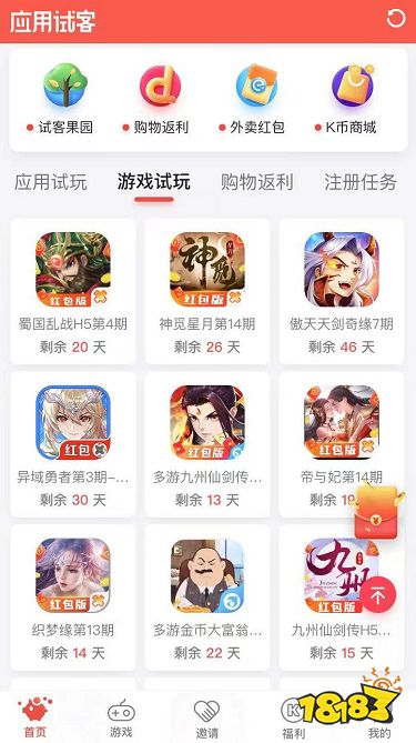 应用试客 类型:试玩体验平台 特点:试玩任务快速挣钱 点击下载