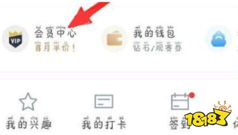 1、在腾讯体育中,点击“会员中心”。