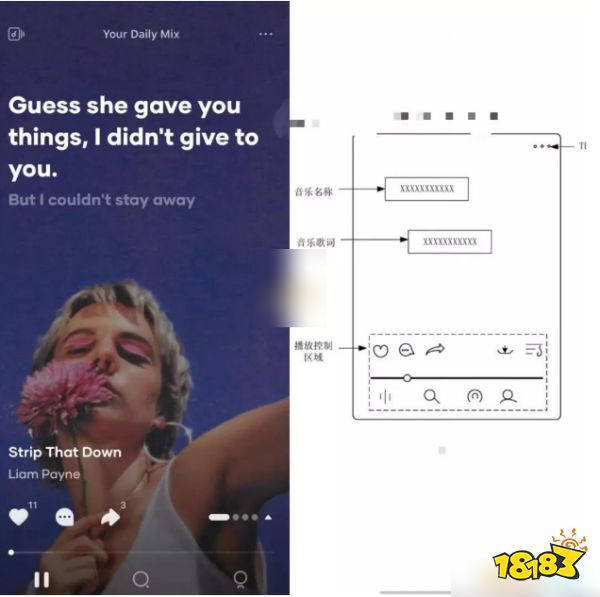 1、打开汽水音乐App,界面上方是音乐名称、音乐歌词等,背景可以是静态和动态的视频。下方则是播放控制区域,包含有点赞、评论、转发等功能,右边则是音乐本地下载和曲库列表。